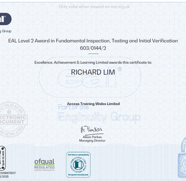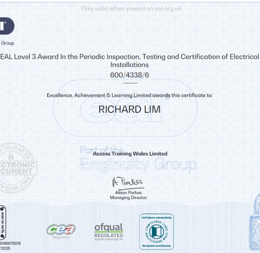 EAL Level 3 Award in the Periodic Inspection, Testing and Certification of Electrical